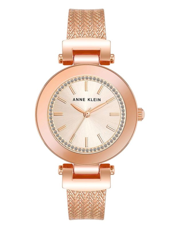 SKU:Anne Klein Womens Glitter Accented Textured Bangle Watch Rose Gold AK4174RGRGCategories:Spring Sale, Watches, Women