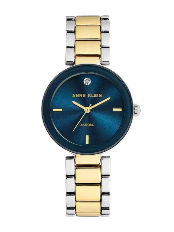 Anne Klein Women’s Genuine Diamond Dial Two-toned Bracelet Watch Navy Silver Gold