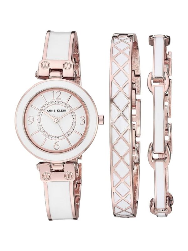 SKU: Anne Klein Women's Premium Crystal Accented Bangle Watch and Bracelet Set White Rose Gold AK3296WTST Categories: ,