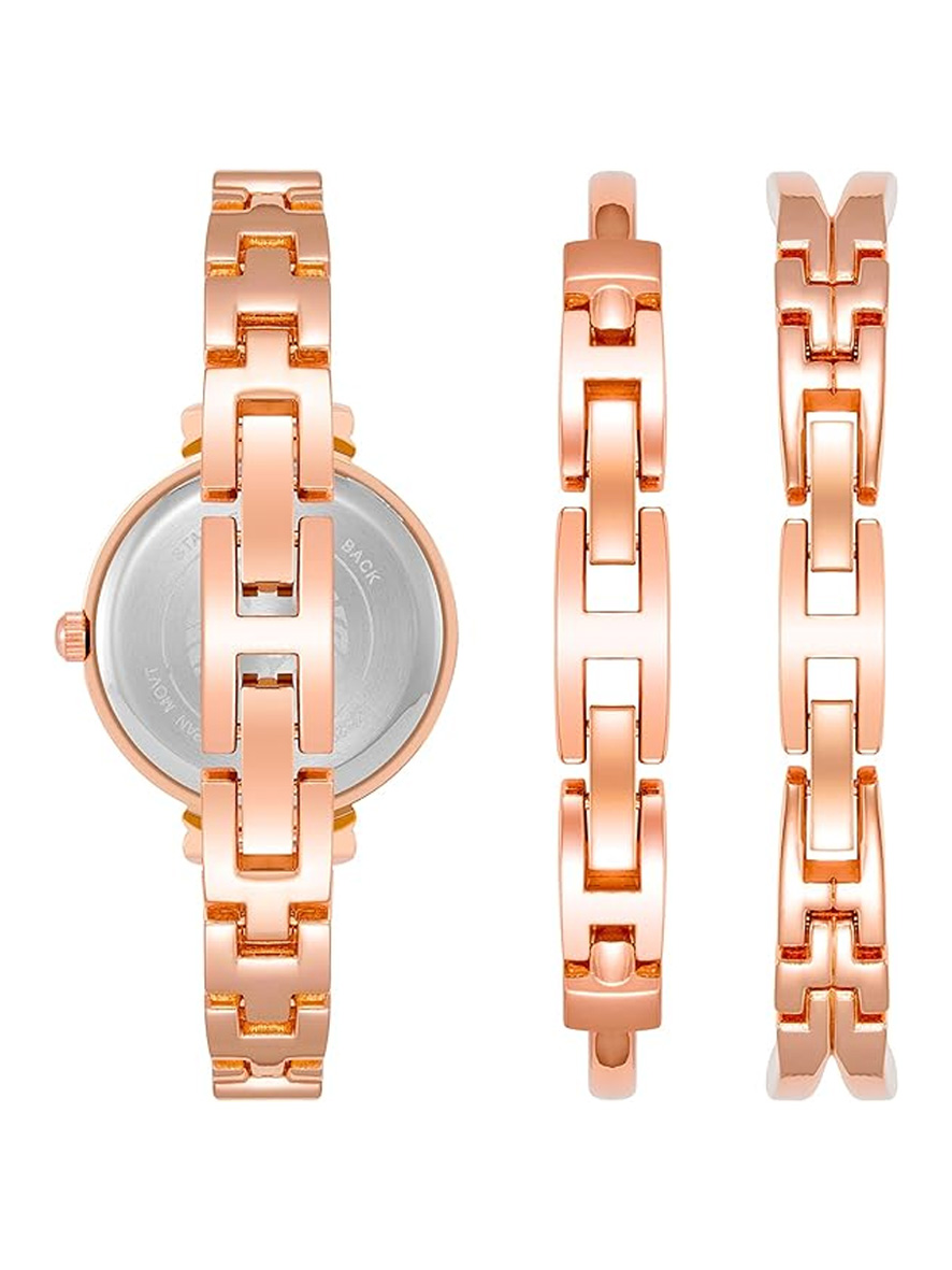 Anne Klein Women’s Premium Crystal Accented Watch and Bracelet Set Rose Gold White