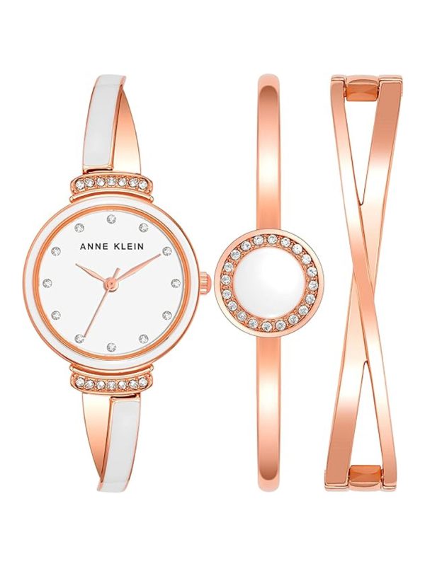 Anne Klein Women’s Premium Crystal Accented Watch and Bracelet Set Rose Gold White