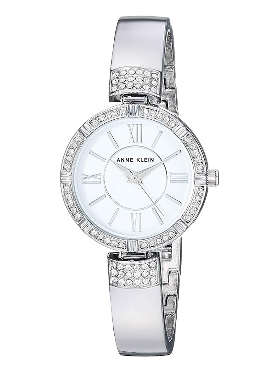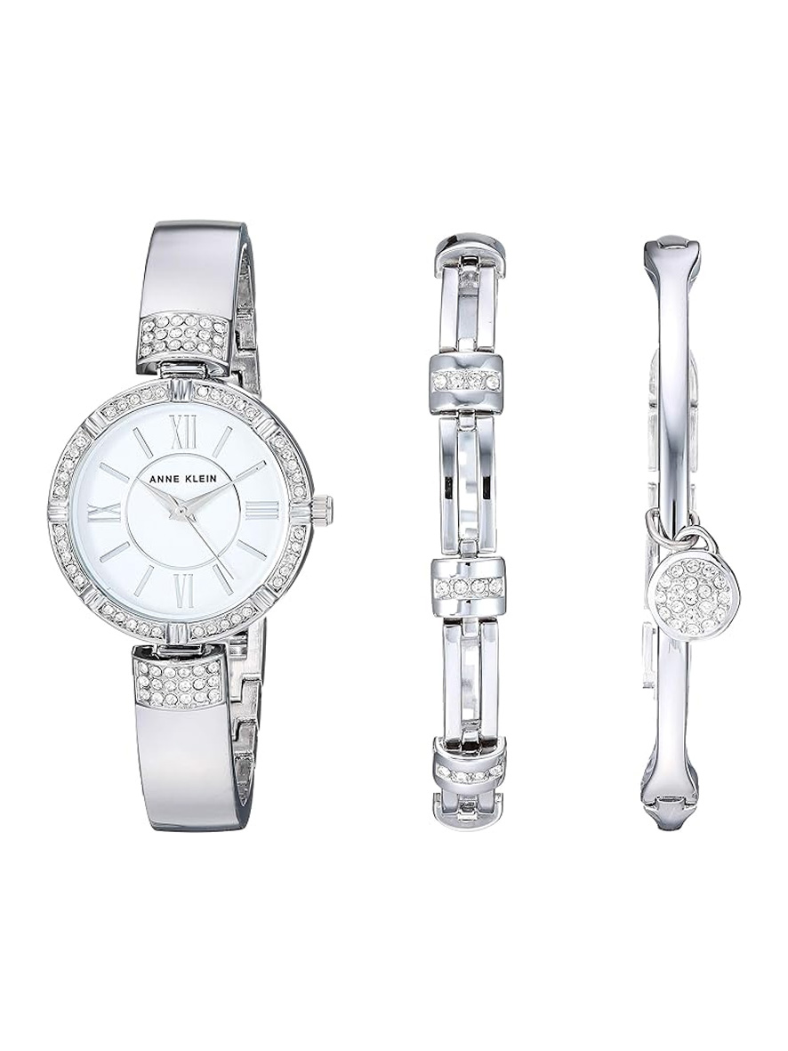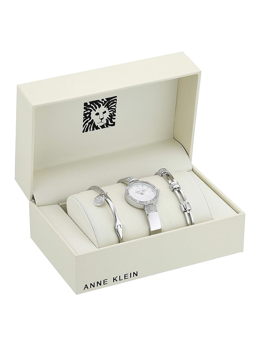Anne Klein Women’s Premium Crystal Accented Bangle Watch and Bracelet Set Silver
