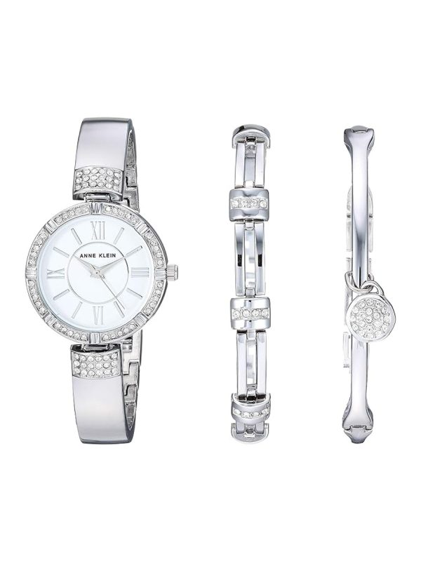 SKU: Anne Klein Women's Premium Crystal Accented Bangle Watch and Bracelet Set Silver AK3295SVST Categories: ,