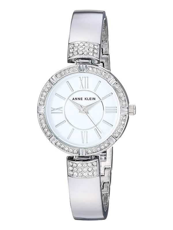 Anne Klein Women’s Premium Crystal Accented Bangle Watch and Bracelet Set Silver