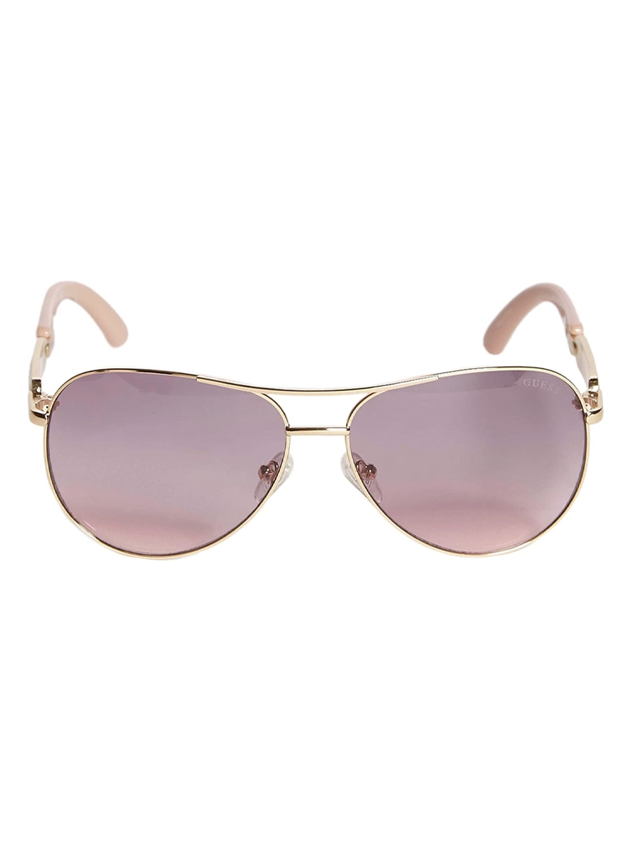 SKU:Guess Sunglasses Pilot Aviator Shiny Rose Gold Frame Brown Gradient Lens GFA7295 6028FCategories:Sunglasses, Women
