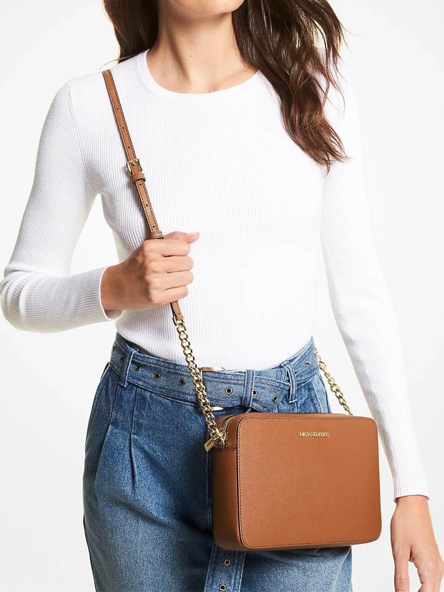Michael Kors Jet Set Large Saffiano Leather Crossbody Bag Luggage