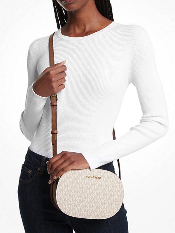 Michael Kors Jet Set Travel Medium Signature Logo Crossbody Bag Vanilla