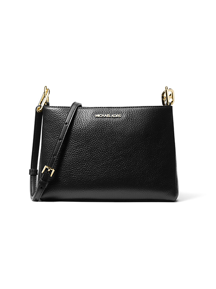 Michael Kors Trisha Medium Pebbled Leather Crossbody Bag Black