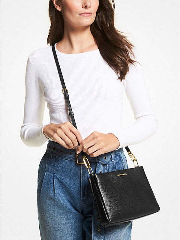 Michael Kors Trisha Medium Pebbled Leather Crossbody Bag Black