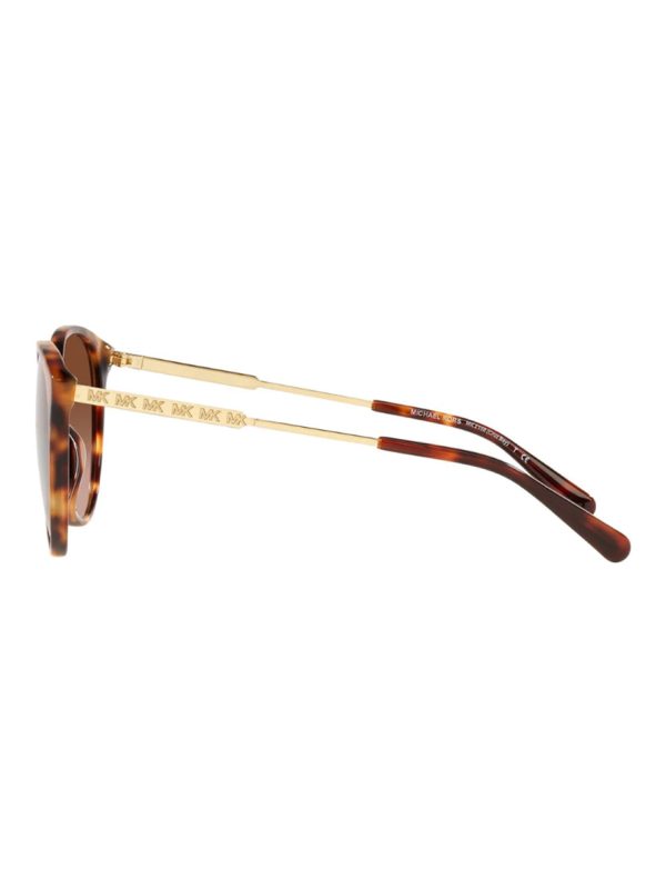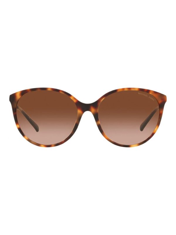 This Michael Kors sunglasses comes in a amber tortoise frame with brown gradient lenses. Full rim sunglasses in a round shape.