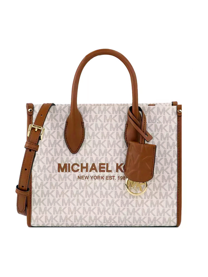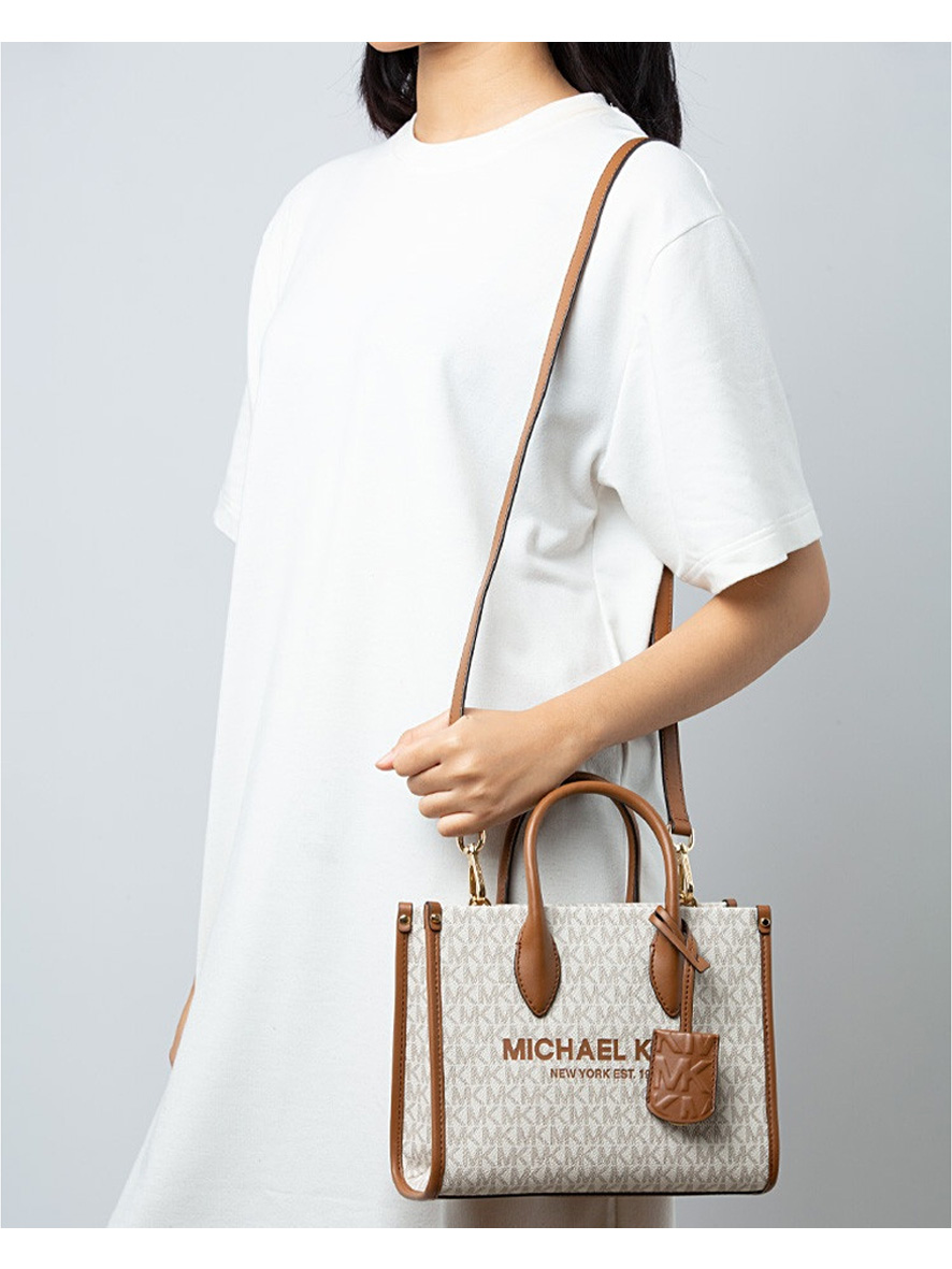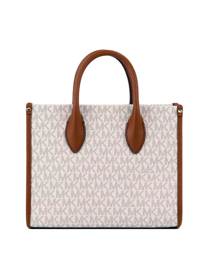 Crafted from Signature-print canvas in a structured silhouette, our Mirella crossbody features buttery-smooth trim and a polished MK charm. Its compact size is perfect for days about town. Carry the bag by the smooth top handles or over the shoulder via the detachable strap.