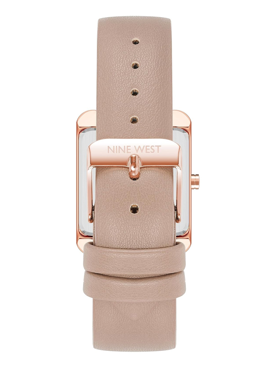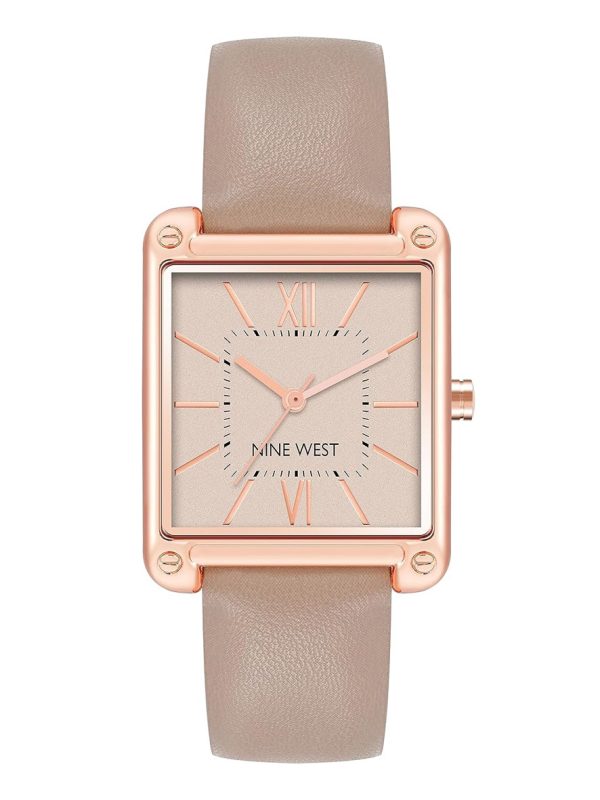 Nine West Women’s Rectangular Face Leather Strap Watch Taupe Rose Gold