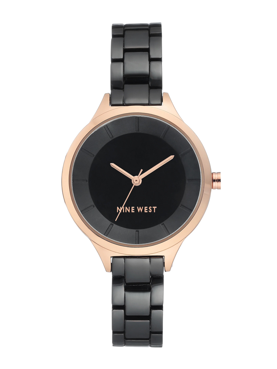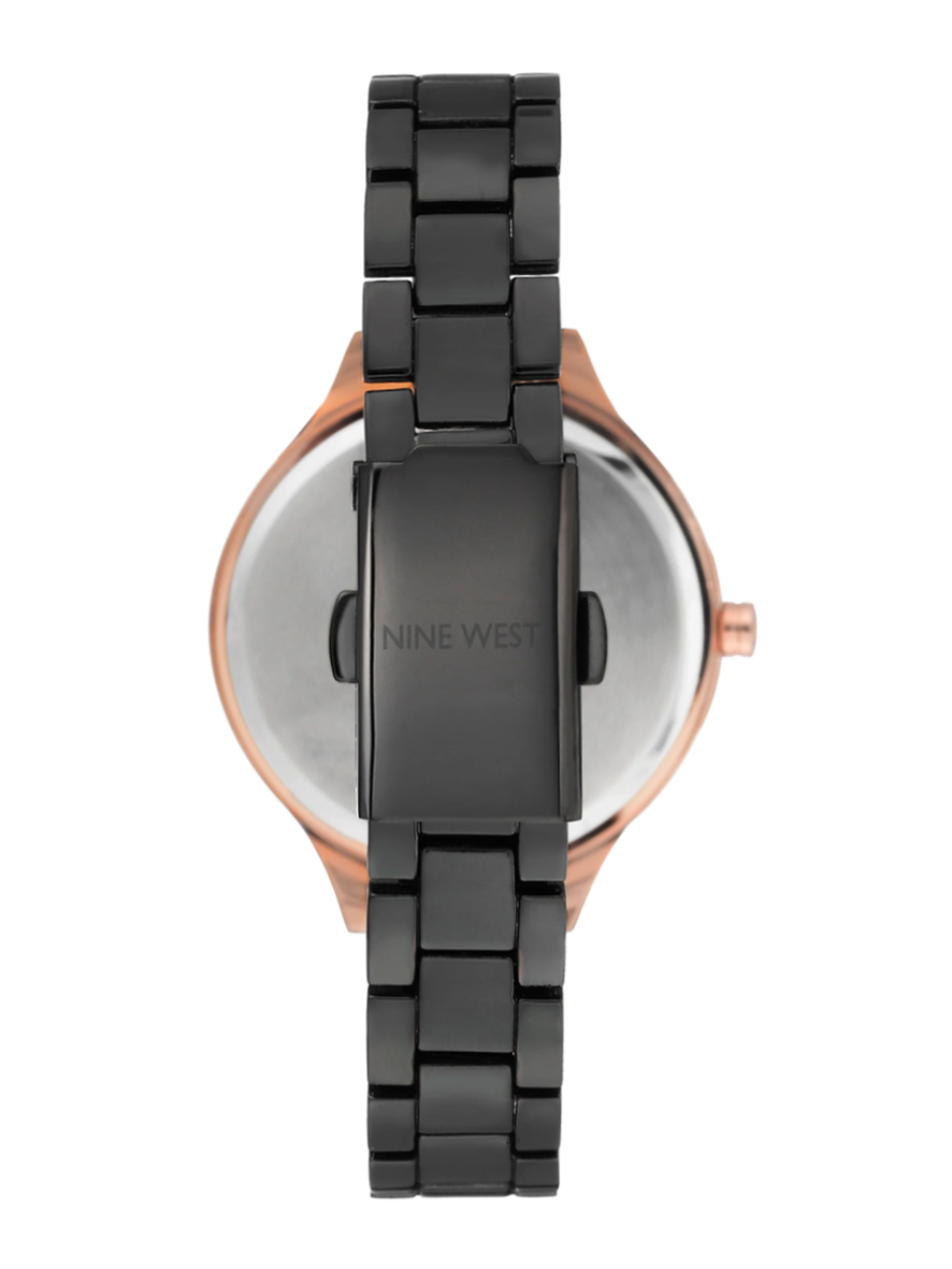 Nine West Women’s Bracelet Watch With Contrasting Case Black Rose Gold