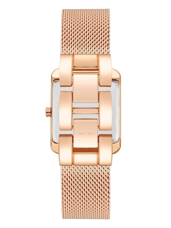 Nine West Women’s Rectangle Face Mesh Bracelet Watch Rose Gold