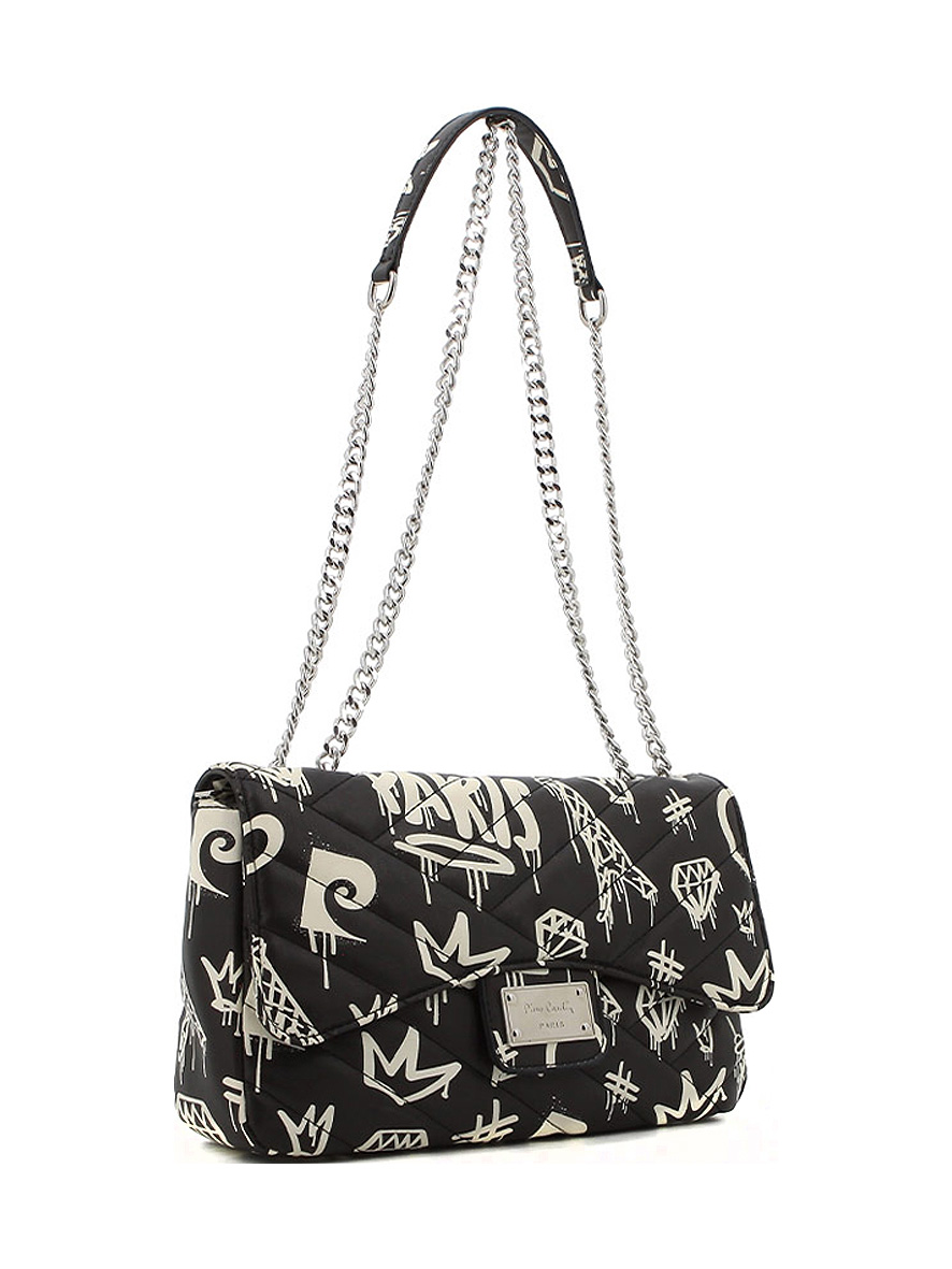 Pierre Cardin Cassidy Chain Bag Black with White Print