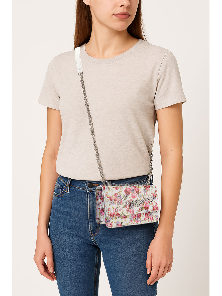 Sissy Boy Fancy Florals Sling Crossbody Bag White Purple Pink