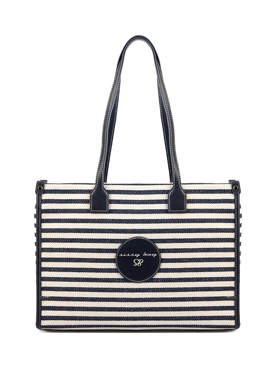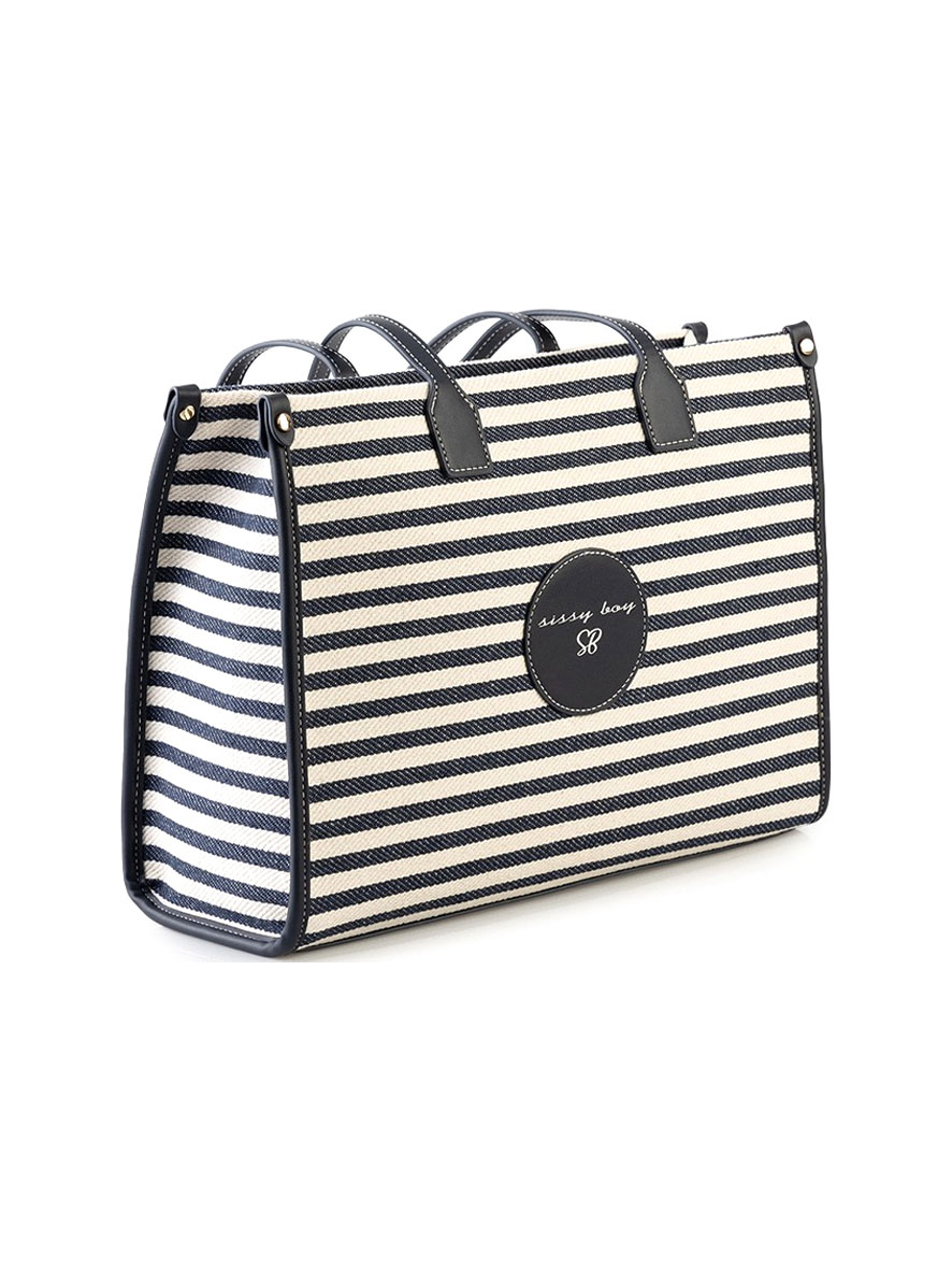 Sissy Boy Love is Lined Striped Tote Blue Off White