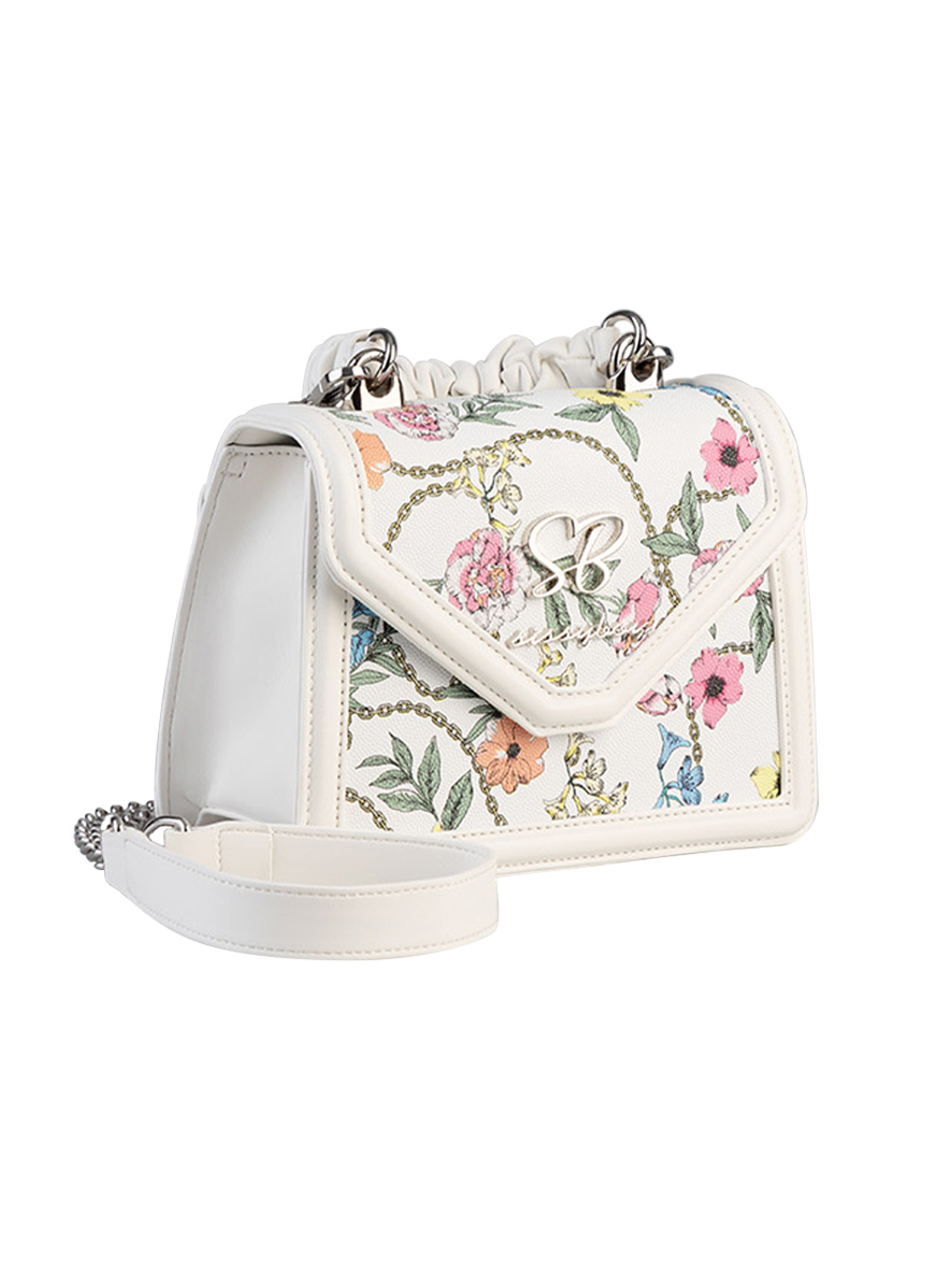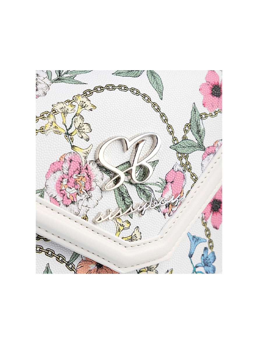 Sissy Boy Flower Denim Print Pompom Bag White Floral