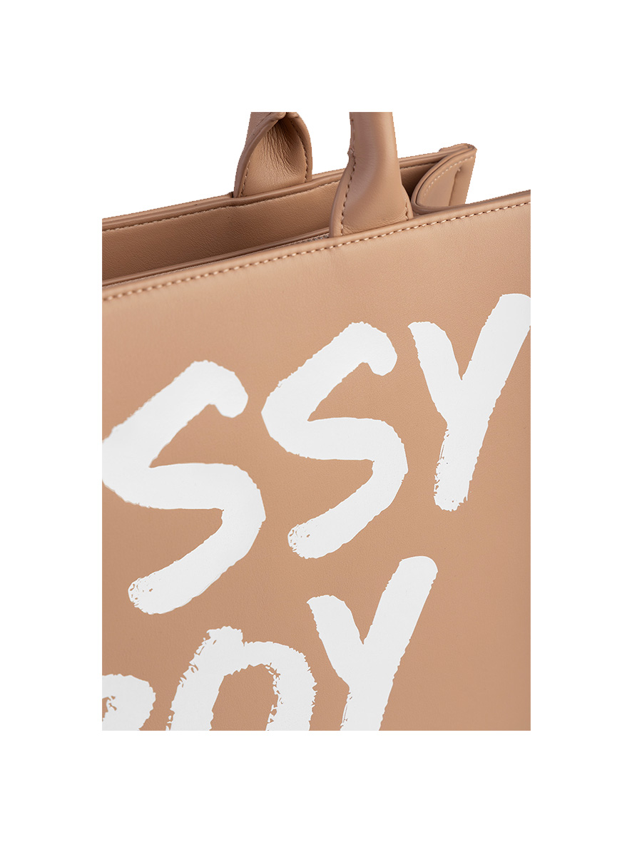 Sissy Boy Shopper with Bold Logo Print Taupe