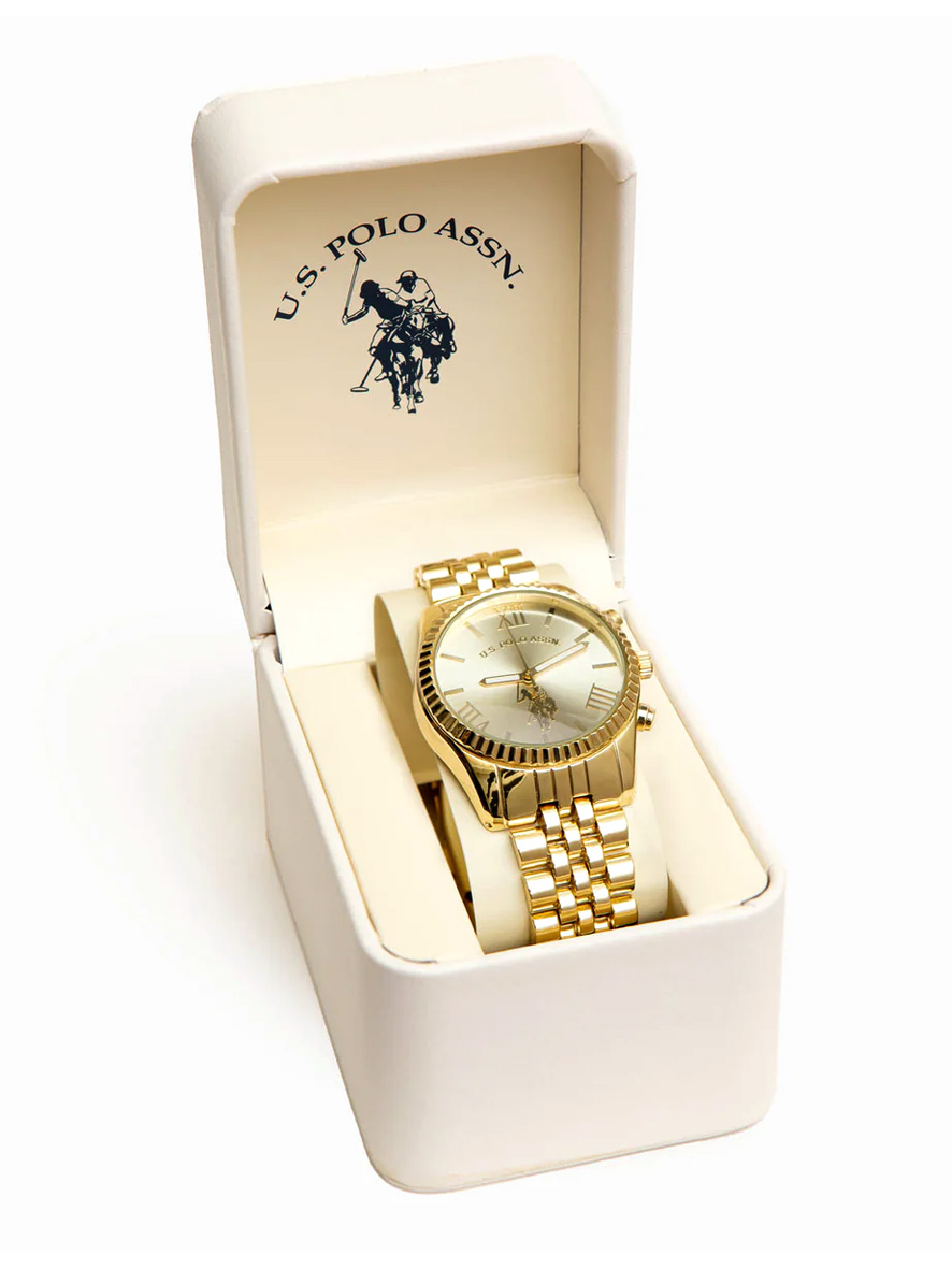 U.S. Polo Assn. Women’s Bracelet Watch with Notched Bezel Gold