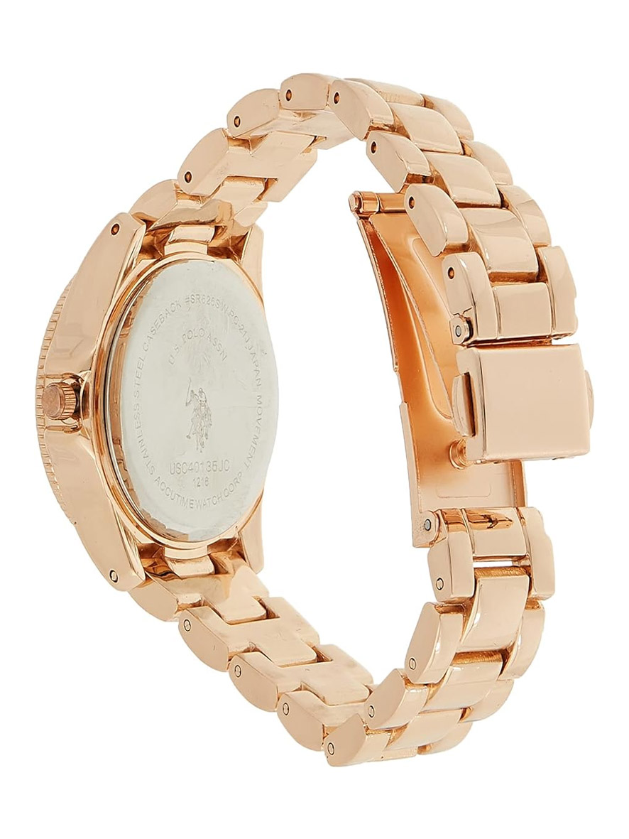 U.S. Polo Assn. Women’s Rose Gold Tone Metal Analog Quartz Watch with Stainless Steel Strap